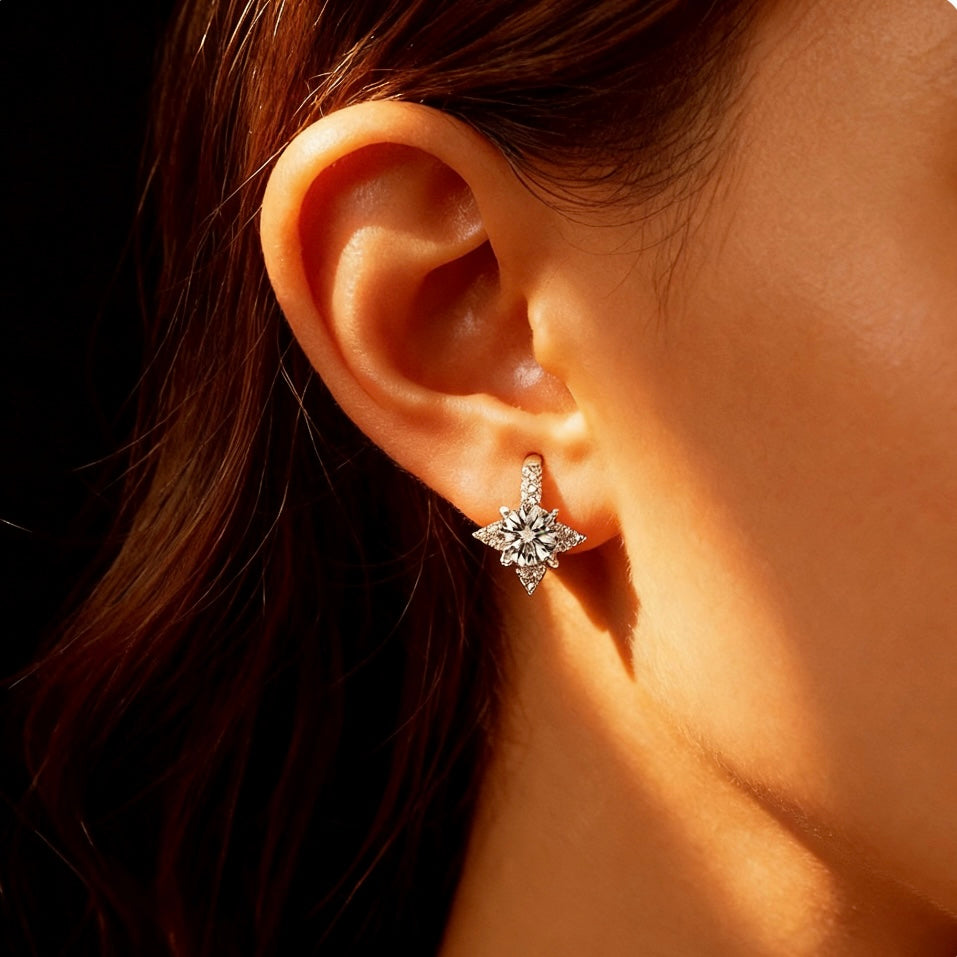 Wähle zwischen 0,5 Karat für eine ruhige, zurückhaltende Eleganz oder 1 Karat für eine stärkere, präsente Ausstrahlung. In beiden Varianten entfalten die Moissanite eine klare, hochwertige Brillanz, die sichtbar ist – ohne aufdringlich zu wirken.