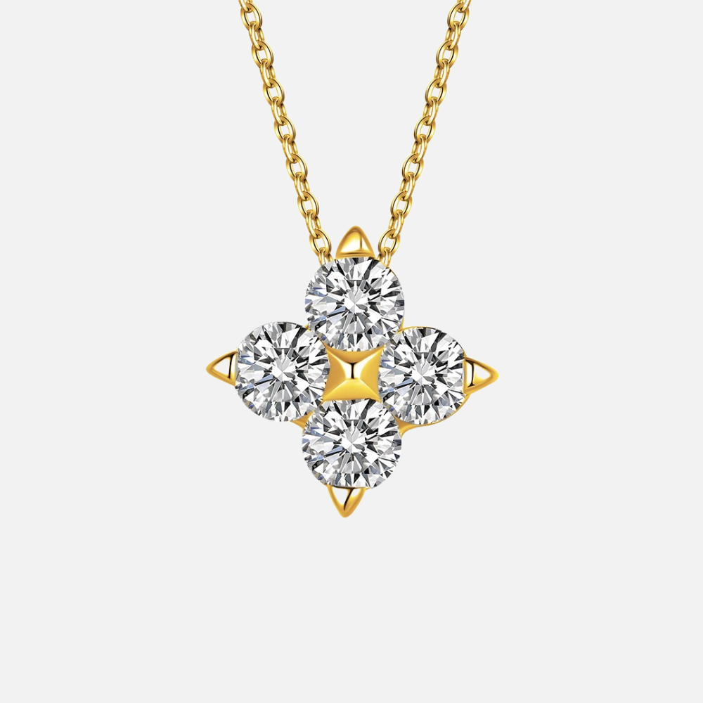 Mehrere Moissanite mit jeweils 0,4 Karat fangen das Licht gleichmäßig ein und erzeugen ein ruhiges, lebendiges Funkeln. Rhea wirkt ausgewogen und elegant – ein Schmuckstück, das sich mühelos tragen lässt und vielseitig kombinierbar ist.
