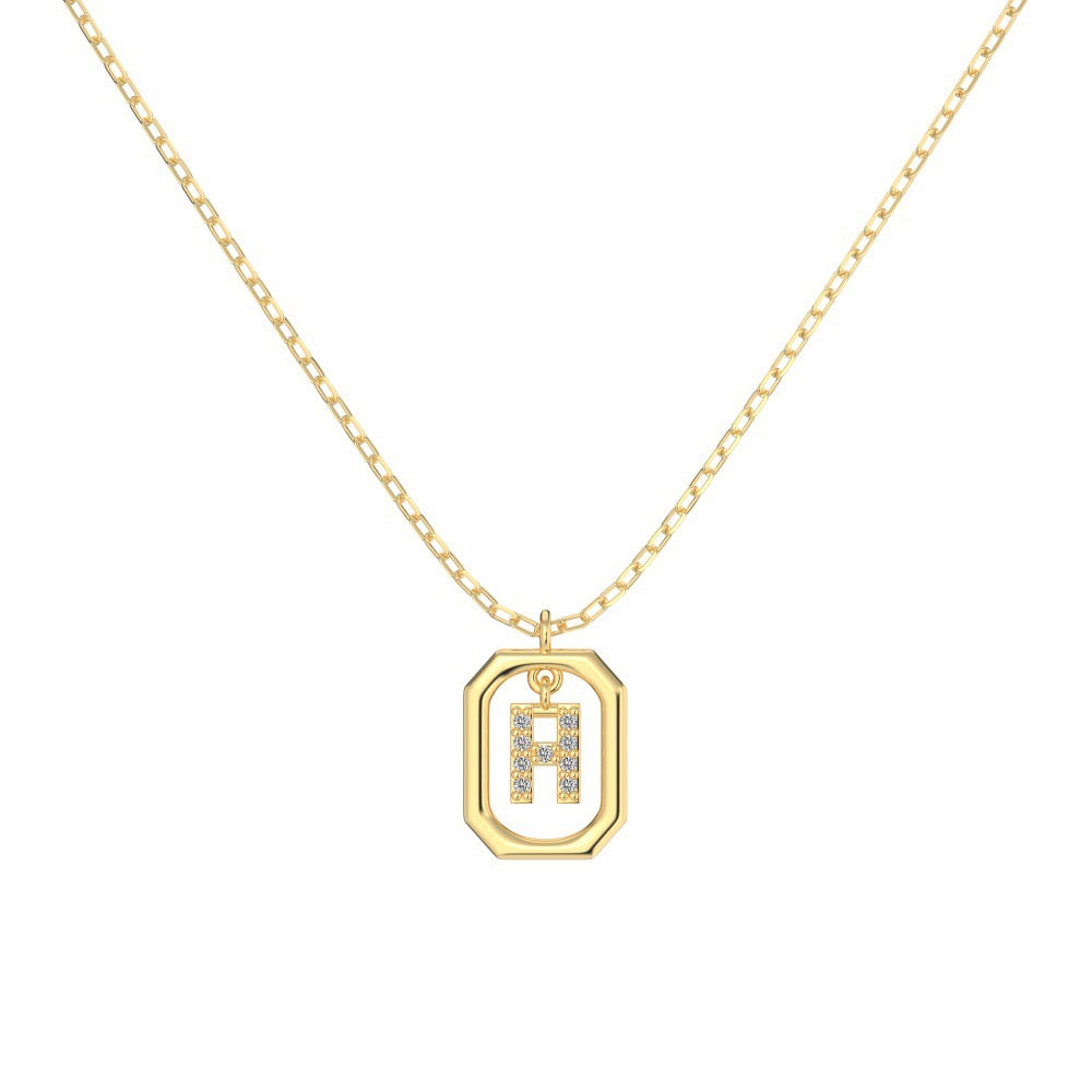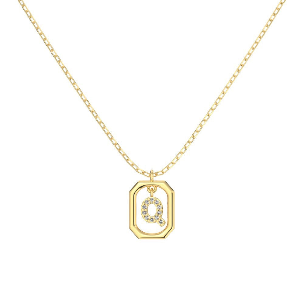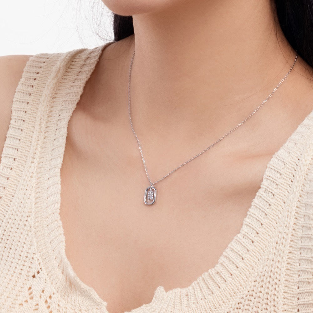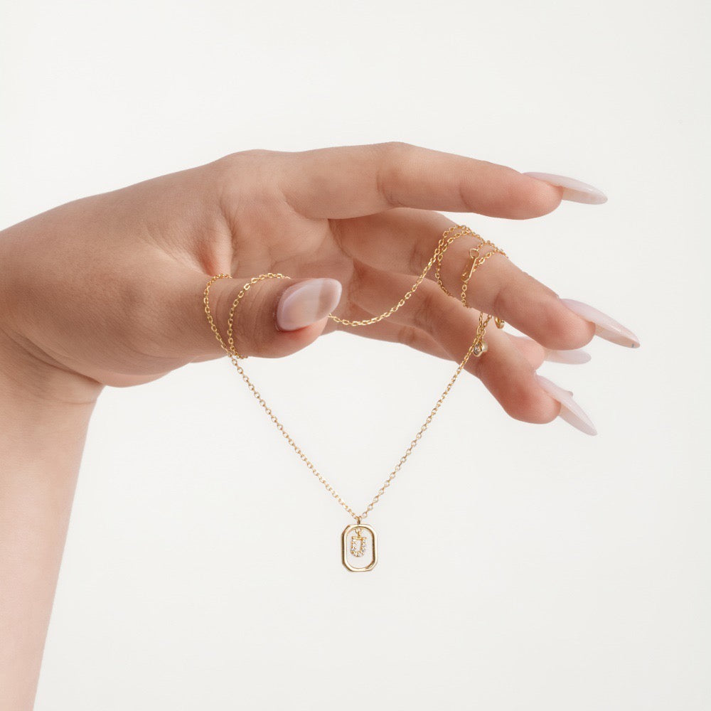 Die Gipfelzeichen Halskette vereint eine klare, moderne Rahmenform mit einem funkelnden Buchstaben-Anhänger. Der fein gefasste Zirkonia verleiht dem Initial subtile Strahlkraft und macht dieses Schmuckstück zu einem persönlichen Begleiter – elegant, zeitlos und voller Bedeutung.