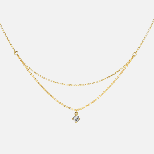 Die Halskette „Lichtpfad“ besticht durch ihr minimalistisches, zweilagiges Design, das gleichzeitig dezent und außergewöhnlich wirkt. Die feinen Gliederketten schmiegen sich sanft an den Hals, während der zentrale Zirkonia-Anhänger das Licht einfängt und mit jedem Atemzug funkelt – wie der erste Sonnenstrahl über den Alpen.