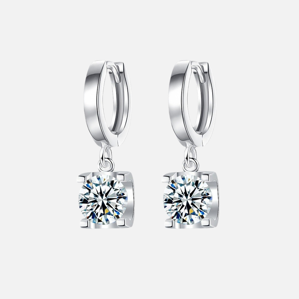 Die Ohrringe sind mit je einem Moissanit von 1 Karat besetzt. Moissanit ist bekannt für seine außergewöhnliche Brillanz, seine Härte und seine Langlebigkeit – Eigenschaften, die ihn zu einer hochwertigen Wahl für dauerhaft getragenen Schmuck machen.